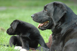 Labrador moeders corrigeren hun pups niet snel echt. Het klinkt alsof ze heftig ingrijpen, maar de pups hebben geen enkel ontzag voor al die bravoure. Omdat ze geleerd hebben dat het bij bravoure blijft...